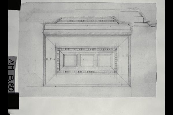 Prospetto e sezione di cassettoni per soffitto. Prospetto e sezione di cassettoni per soffitto