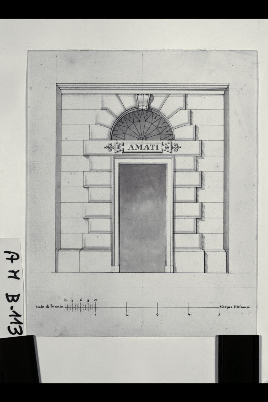 Prospetto del portone d'ingresso della casa di Giovanni Battista Amati a Milano (già Porta Comasina 2126). Prospetto del portone d'ingresso della casa di Giovanni Battista Amati a Milano (già Porta Comasina 2126)