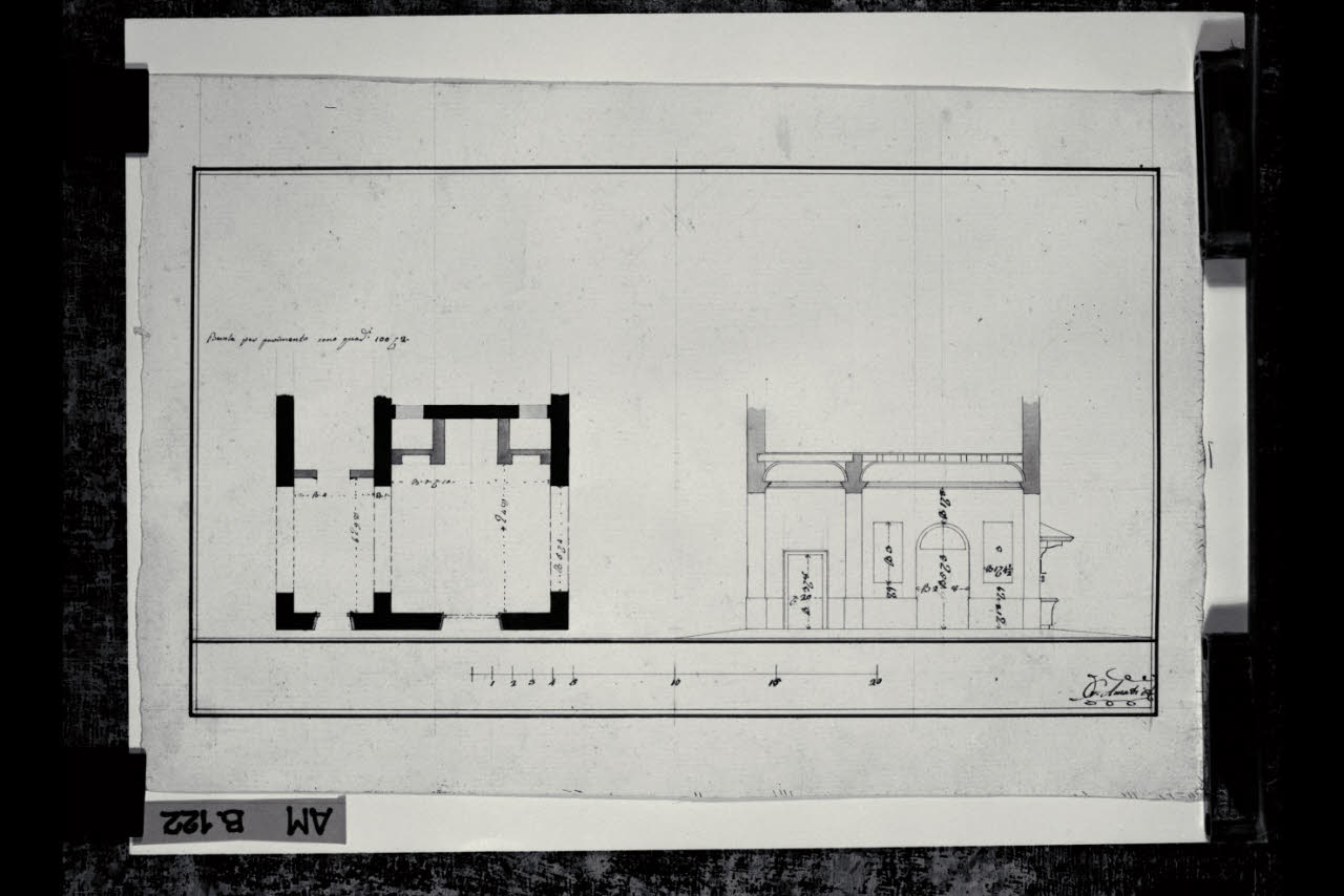 Pianta e prospetto di locale al piano terreno della Villa Durini (detta Grassa) a Monza. Pianta e prospetto di locale al piano terreno della Villa Durini (detta Grassa) a Monza