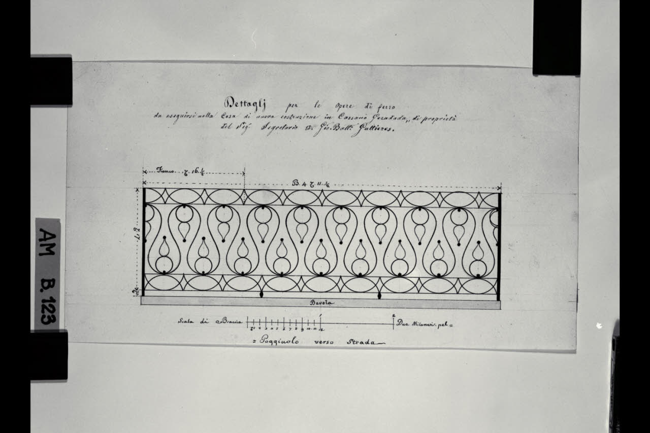 Prospetto per un poggiolo di Casa Guttieres a Cassano d'Adda. Prospetto per un poggiolo di Casa Guttieres a Cassano d'Adda