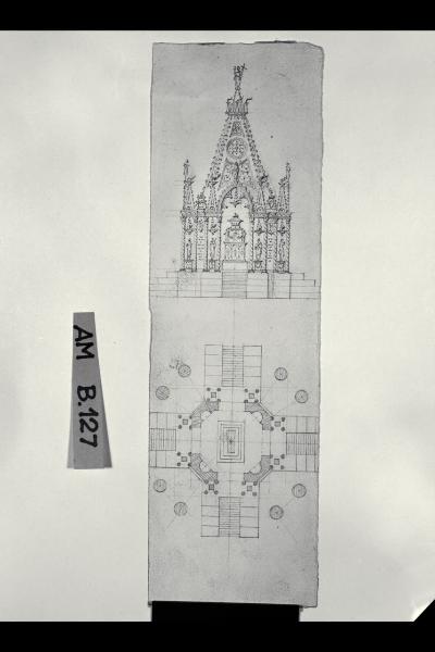 Pianta e prospetto di un catafalco. Pianta e prospetto di un catafalco