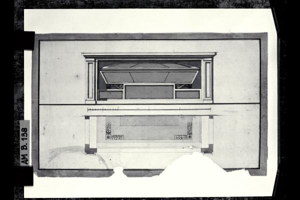Pianta e prospetto di un altare con urna. Pianta e prospetto di un altare con urna
