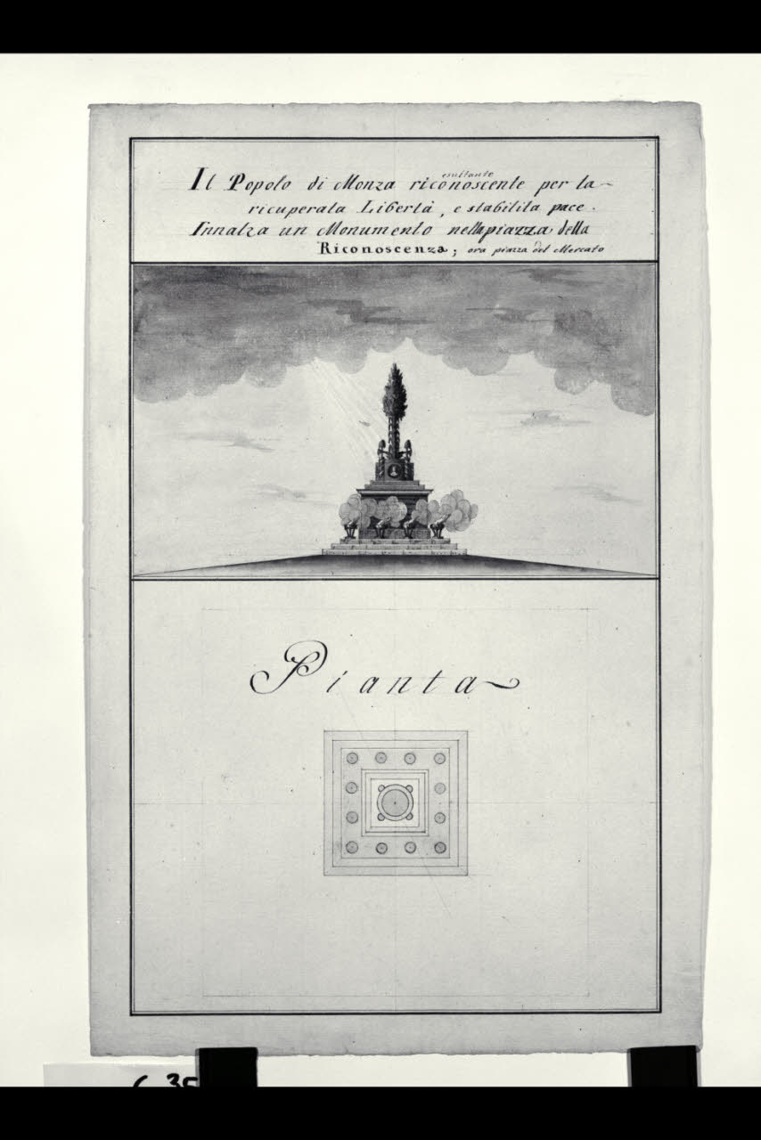 Pianta e prospetto di un monumento per piazza della Riconoscenza a Monza. Pianta e prospetto di un monumento per piazza della Riconoscenza a Monza