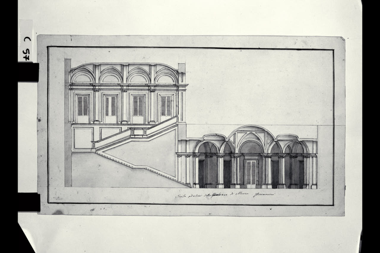 Sezione dello scalone e atrio della Villa Arciducale (Reale) a Monza. Sezione dello scalone e atrio della Villa Arciducale (Reale) a Monza
