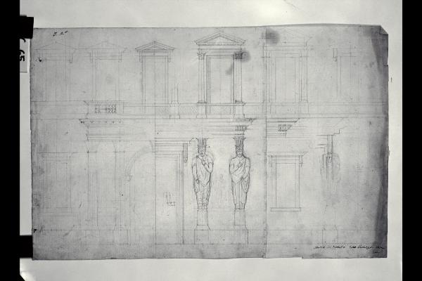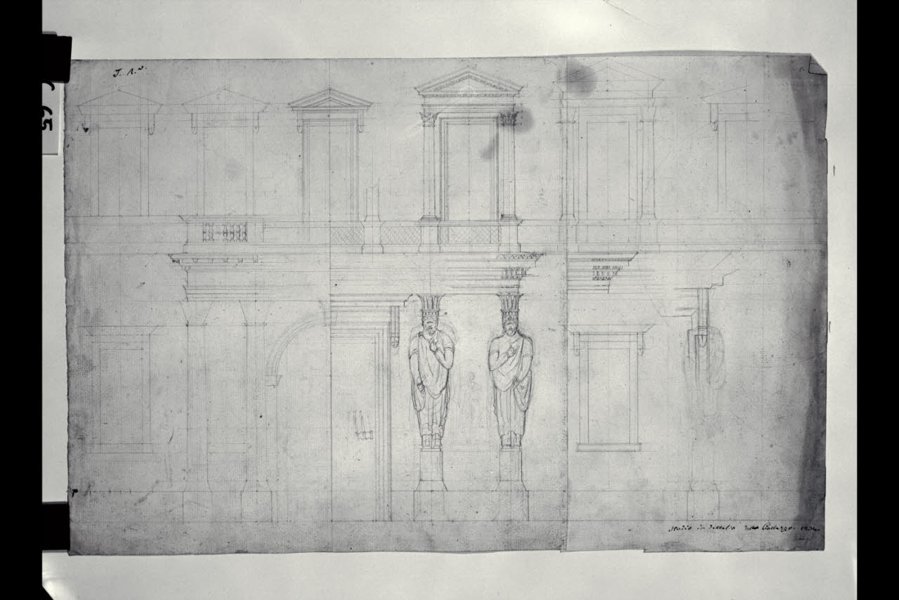 Prospetto parziale di un palazzo con telamoni. Prospetto parziale di un palazzo con telamoni