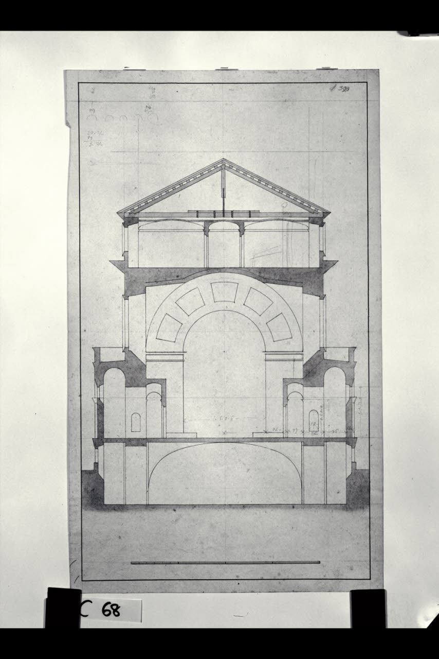 Sezione trasversale del corpo di fabbrica centrale dell'Ospedale di S. Luigi a Torino. Sezione trasversale del corpo di fabbrica centrale dell'Ospedale di S. Luigi a Torino