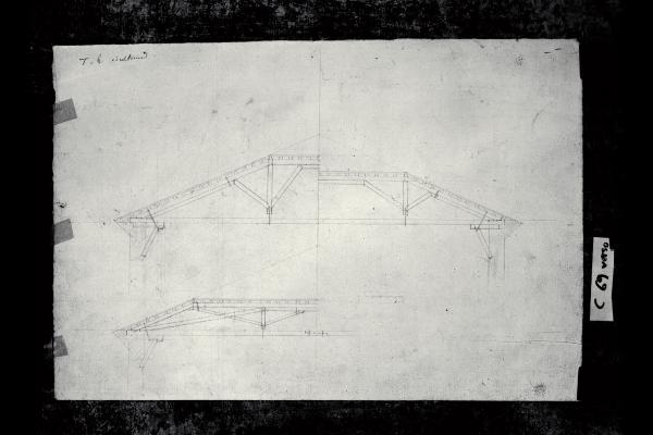 Sezione dell'armatura del tetto di un teatro diurno e notturno. Sezione dell'armatura del tetto di un teatro diurno e notturno