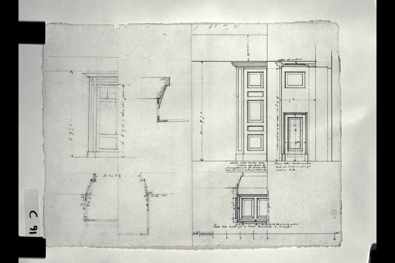 Pianta e prospetto della porta della chiesa di S. Giorgio a Cornate d'Adda. Pianta e prospetto della porta della chiesa di S. Giorgio a Cornate d'Adda