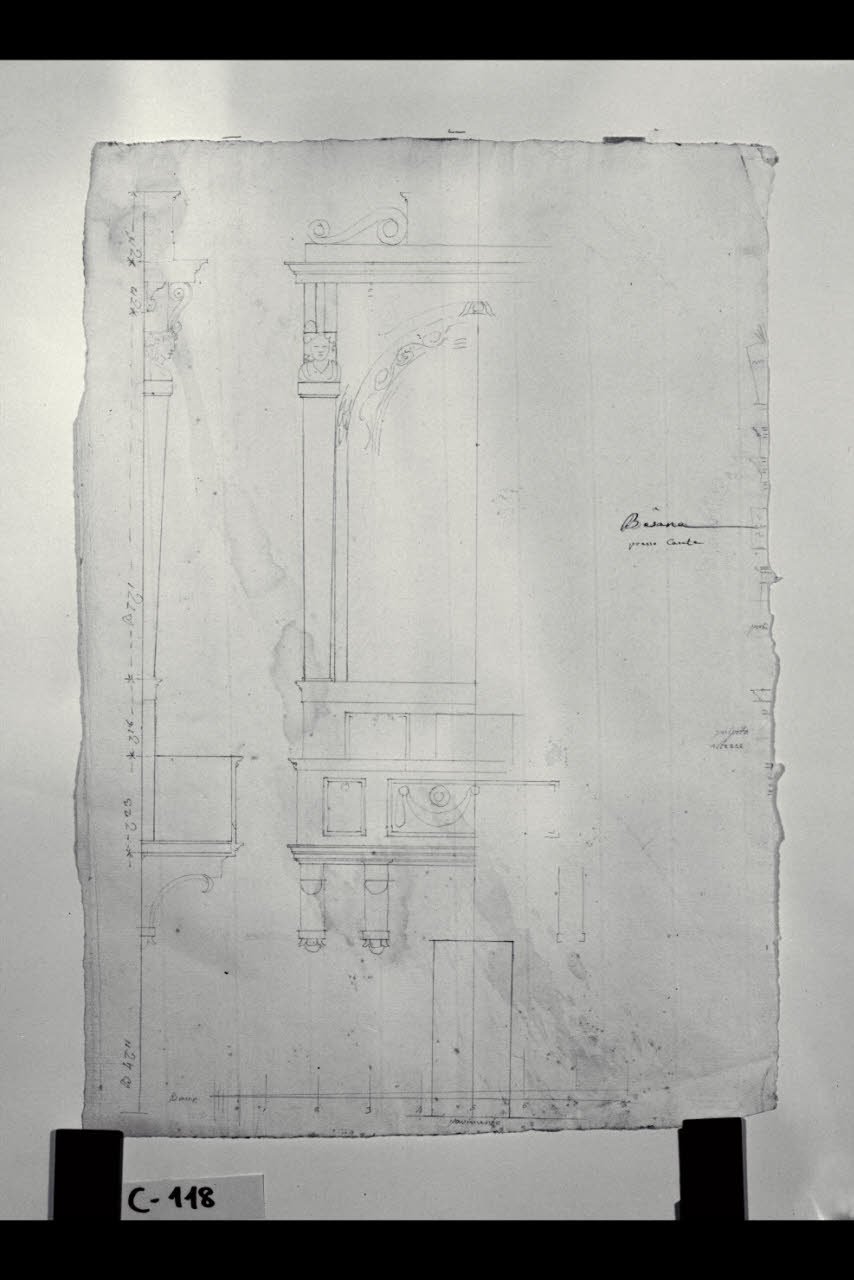 Prospetto e sezione di un pulpito della chiesa dei SS. Pietro, Marcellino e Erasmo a Besana in Brianza. Prospetto e sezione di un pulpito della chiesa dei SS. Pietro, Marcellino e Erasmo a Besana in Brianza
