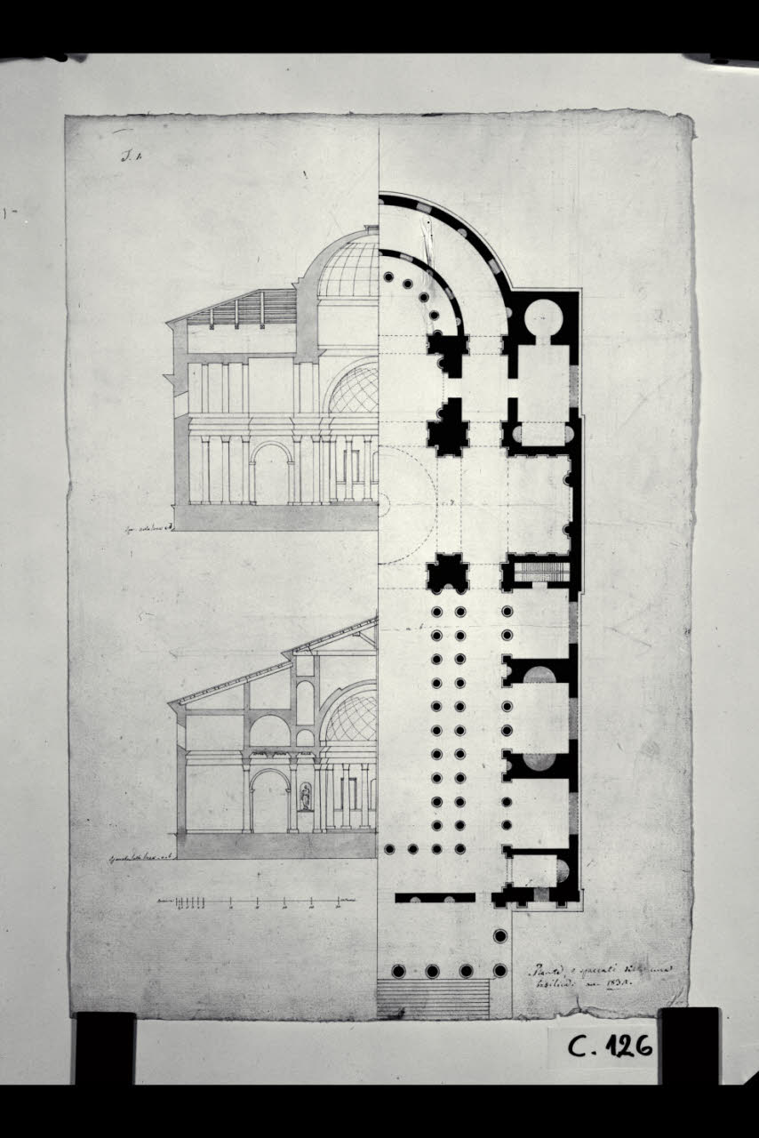Pianta e sezioni di una basilica. Pianta e sezioni di una basilica