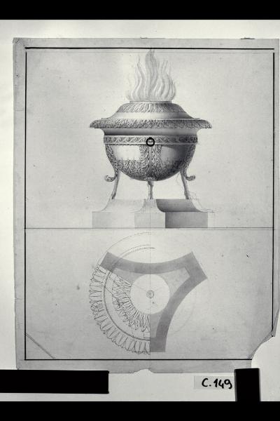 Pianta e prospetto di un braciere. Pianta e prospetto di un braciere
