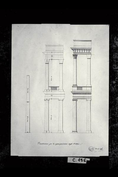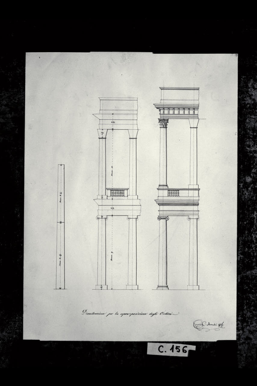 Prospetto e sezione della sovrapposizione degli ordini ionico e corinzio. Prospetto e sezione della sovrapposizione degli ordini ionico e corinzio