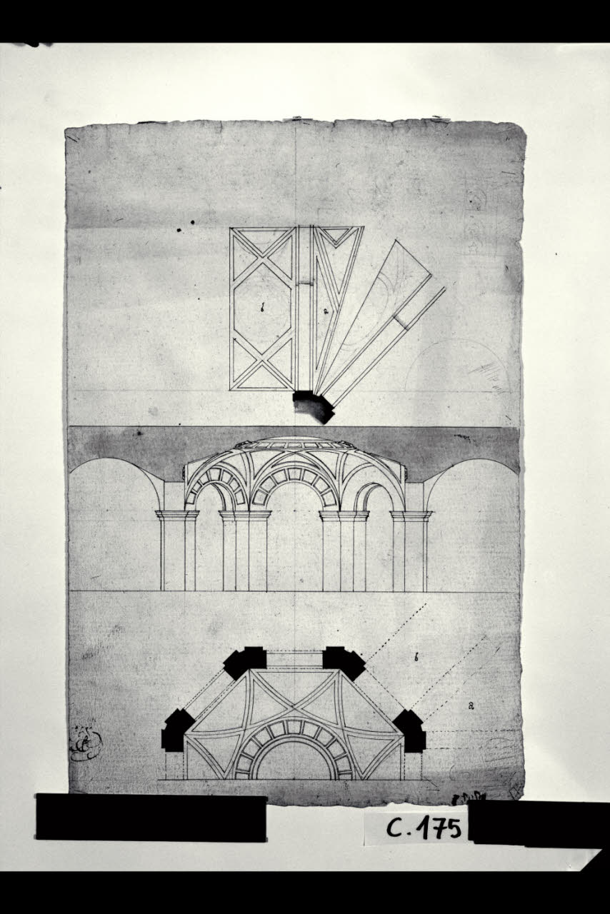Pianta e sezione di una cappella funeraria principesca. Pianta e sezione di una cappella funeraria principesca