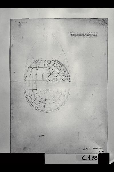 Proiezione in pianta e sezione di una cupola a cassettoni. Proiezione in pianta e sezione di una cupola a cassettoni