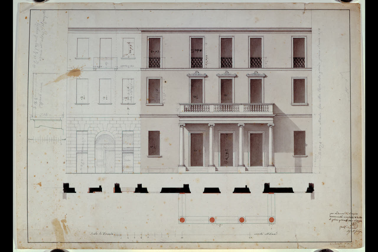Pianta e prospetto della fronte della Casa di Carlo Amati a Milano (già Contrada della Spiga 788). Pianta e prospetto della fronte della Casa di Carlo Amati a Milano (già Contrada della Spiga 788)