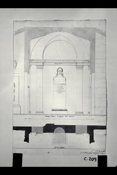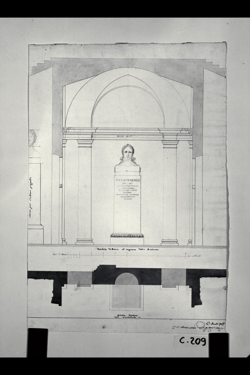 Pianta e prospetto del vestibolo d'ingresso del Palazzo di Brera a Milano con busto in onore di Ferdinando I. Pianta e prospetto del vestibolo d'ingresso del Palazzo di Brera a Milano con busto in onore di Ferdinando I