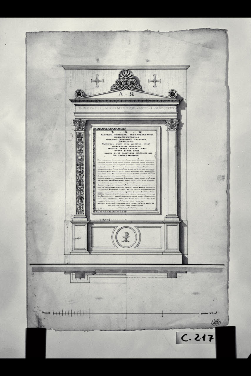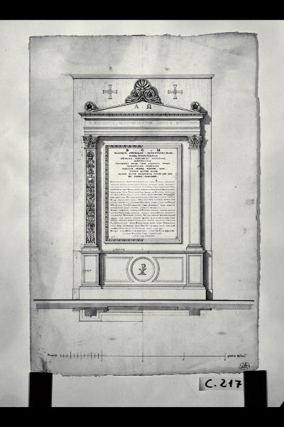 Pianta e prospetto della lapide per la contessa Isabella Blasio Pallavicini nella chiesa di S. Maria de' Servi a Milano. Pianta e prospetto della lapide per la contessa Isabella Blasio Pallavicini nella chiesa di S. Maria de' Servi a Milano