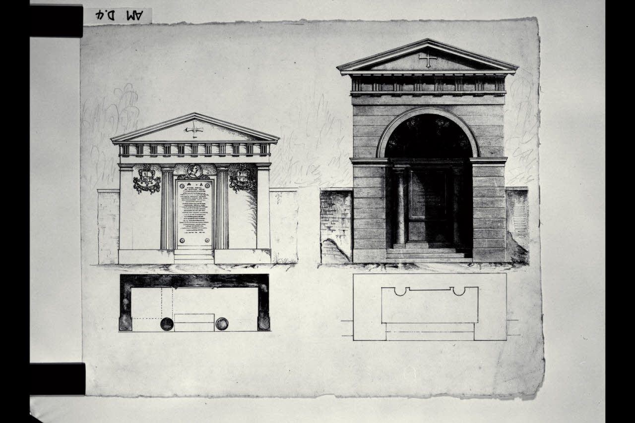 Piante e prospetti delle edicole funerarie per la contessa Paola Taverna e per il barone Augusto Bataille già nel cimitero di Porta Romana a Milano. Piante e prospetti delle edicole funerarie per la contessa Paola Taverna e per il barone Augusto Bataille già nel cimitero di Porta Romana a Milano