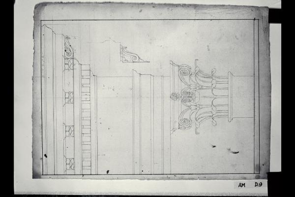Prospetto di trabeazione e capitello di ordine corinzio. Prospetto di trabeazione e capitello di ordine corinzio
