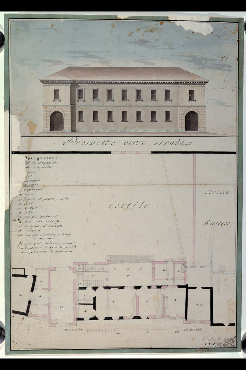 Pianta e prospetto della Villa Sormani a Cornate d'Adda. Pianta e prospetto della Villa Sormani a Cornate d'Adda