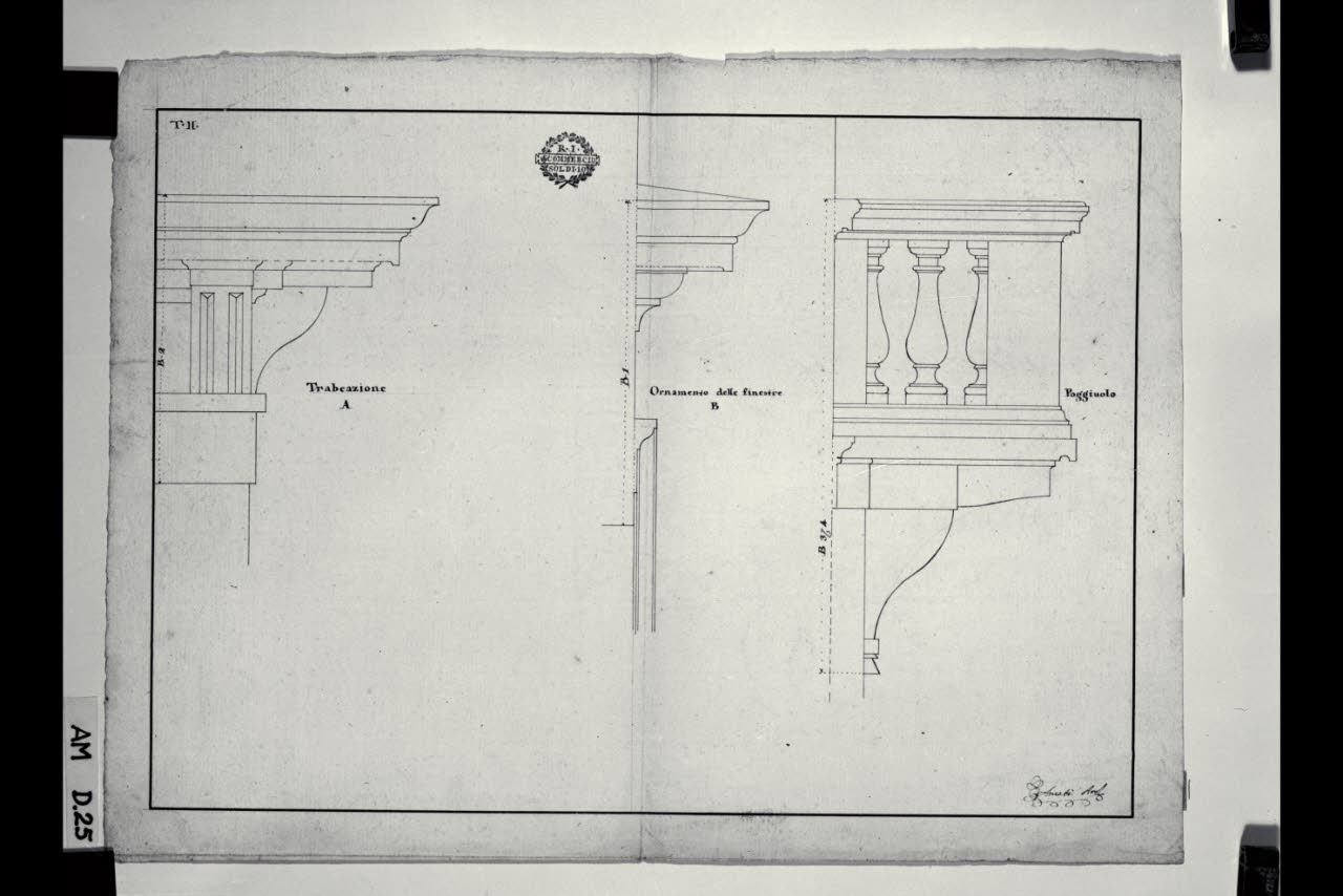 Prospetti di trabeazione, cornice di finestre e poggiolo. Prospetti di trabeazione, cornice di finestre e poggiolo