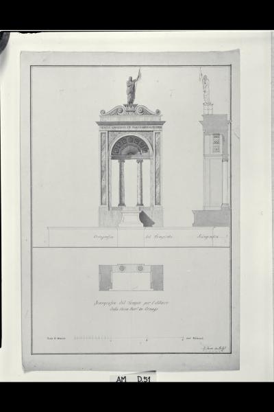 Pianta, prospetto e sezione trasversale di tempietto per l'altare della chiesa di S. Agata a Ornago. Pianta, prospetto e sezione trasversale di tempietto per l'altare della chiesa di S. Agata a Ornago