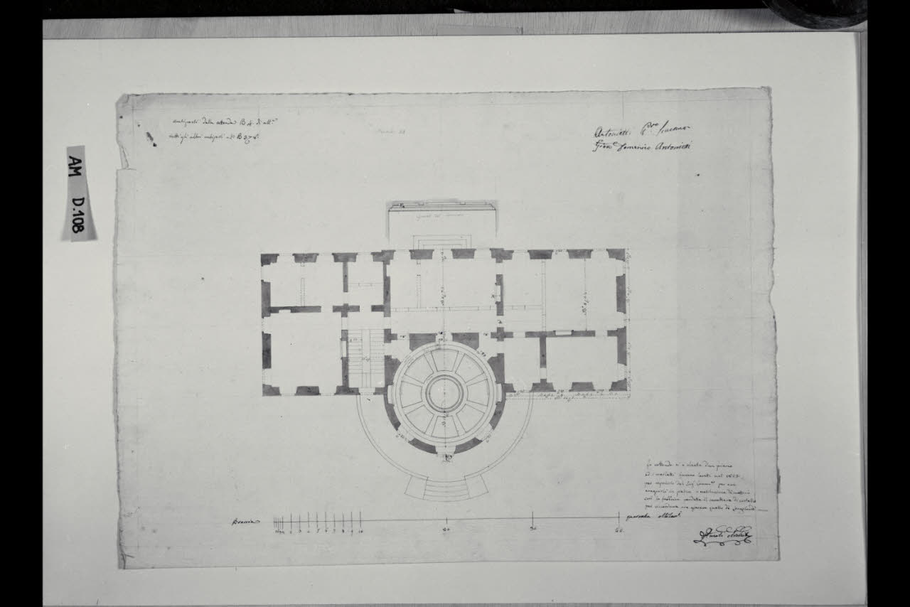 Pianta del primo piano e spaccato di un lacunare della Villa Durini (poi Frette) a Monza. Pianta del primo piano e spaccato di un lacunare della Villa Durini (poi Frette) a Monza