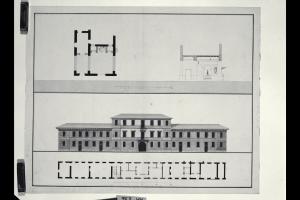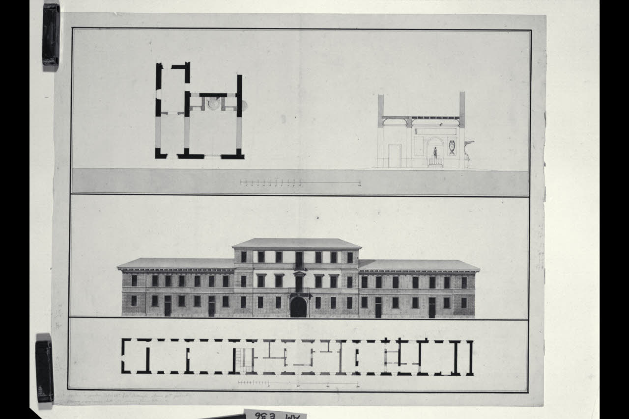 Pianta e prospetto della Villa Durini (detta Grassa) a Monza con pianta e sezione di un locale. Pianta e prospetto della Villa Durini (detta Grassa) a Monza con pianta e sezione di un locale