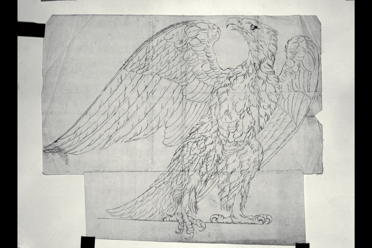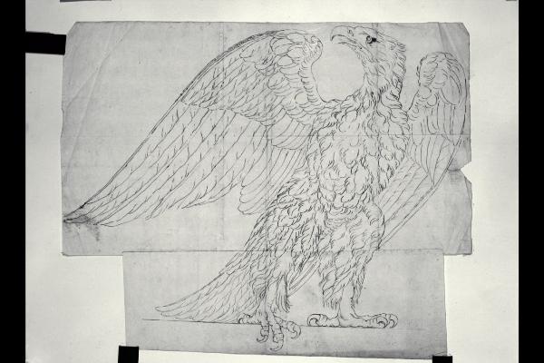 disegno eseguito a inchiostro bruno su carta bianca composta di cinque fogli incollati