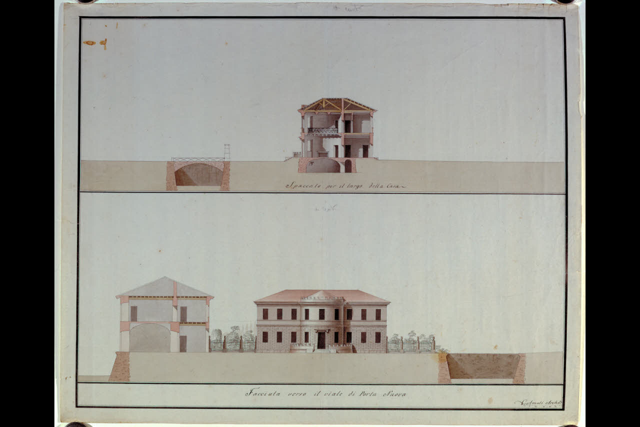 Sezione e prospetto di Villa Durini (poi Frette) a Monza. Sezione e prospetto di Villa Durini (poi Frette) a Monza