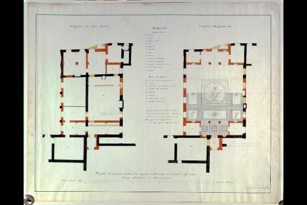 Pianta e proiezione in pianta della decorazione del soffitto per il pianoterra e il salone della Villa Archinto (Pennati) a Monza. Pianta e proiezione in pianta della decorazione del soffitto per il pianoterra e il salone della Villa Archinto (Pennati) a Monza