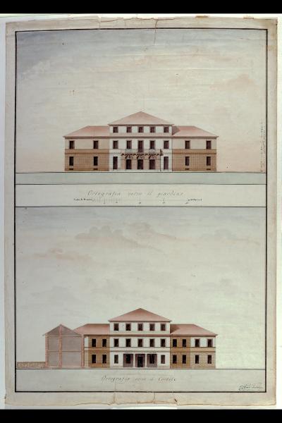 Prospetti verso il giardino e verso il cortile del primo progetto della Villa Casnati a Casnate. Prospetti verso il giardino e verso il cortile del primo progetto della Villa Casnati a Casnate