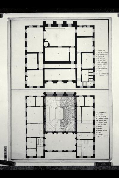 Piante del piano terreno e del primo piano di una villa a due piani. Piante del piano terreno e del primo piano di una villa a due piani