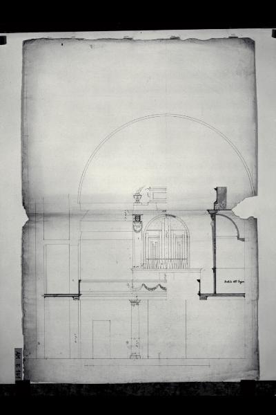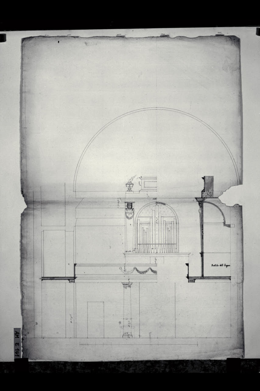 Prospetto e sezione dell'organo della chiesa di S. Michele Arcangelo a Belgioioso. Prospetto e sezione dell'organo della chiesa di S. Michele Arcangelo a Belgioioso