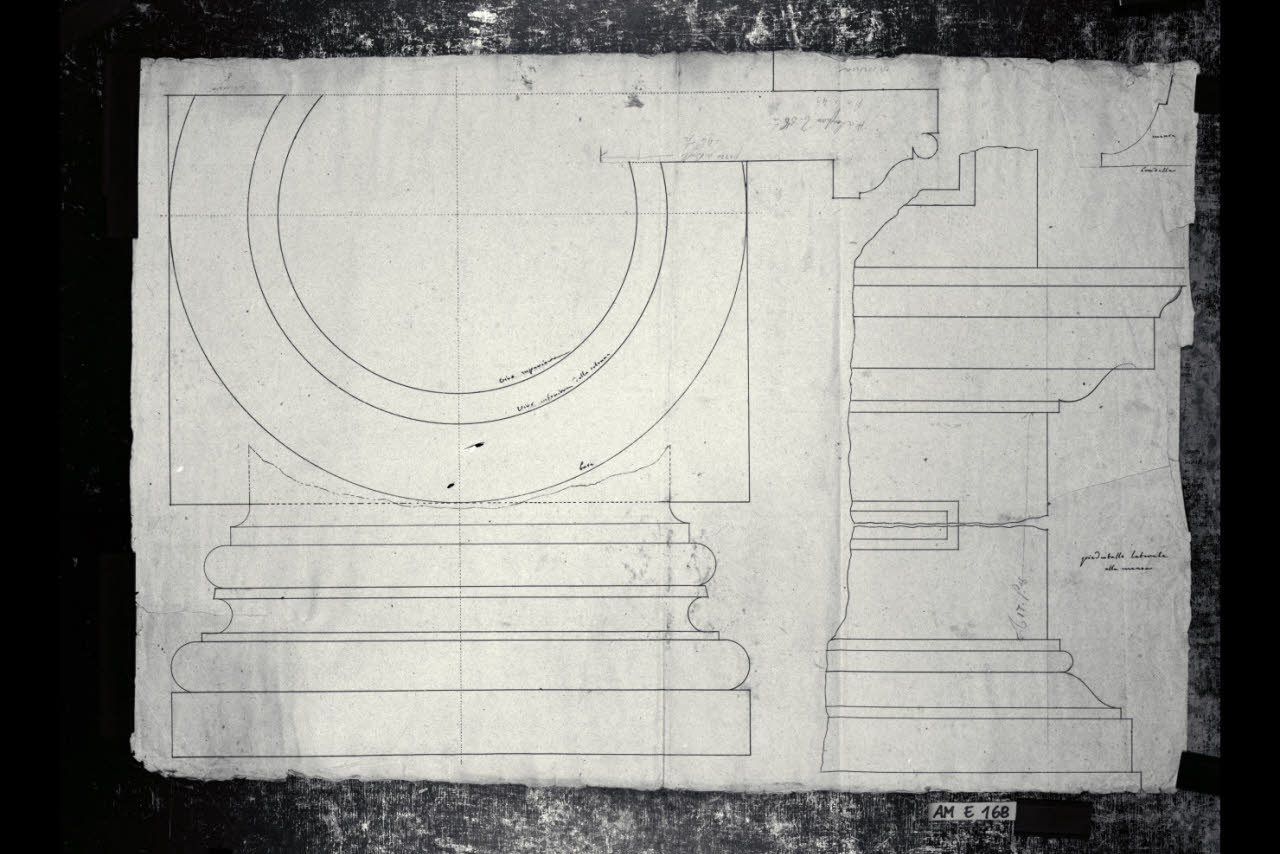 Pianta e prospetti parziali di colonna. Pianta e prospetti parziali di colonna