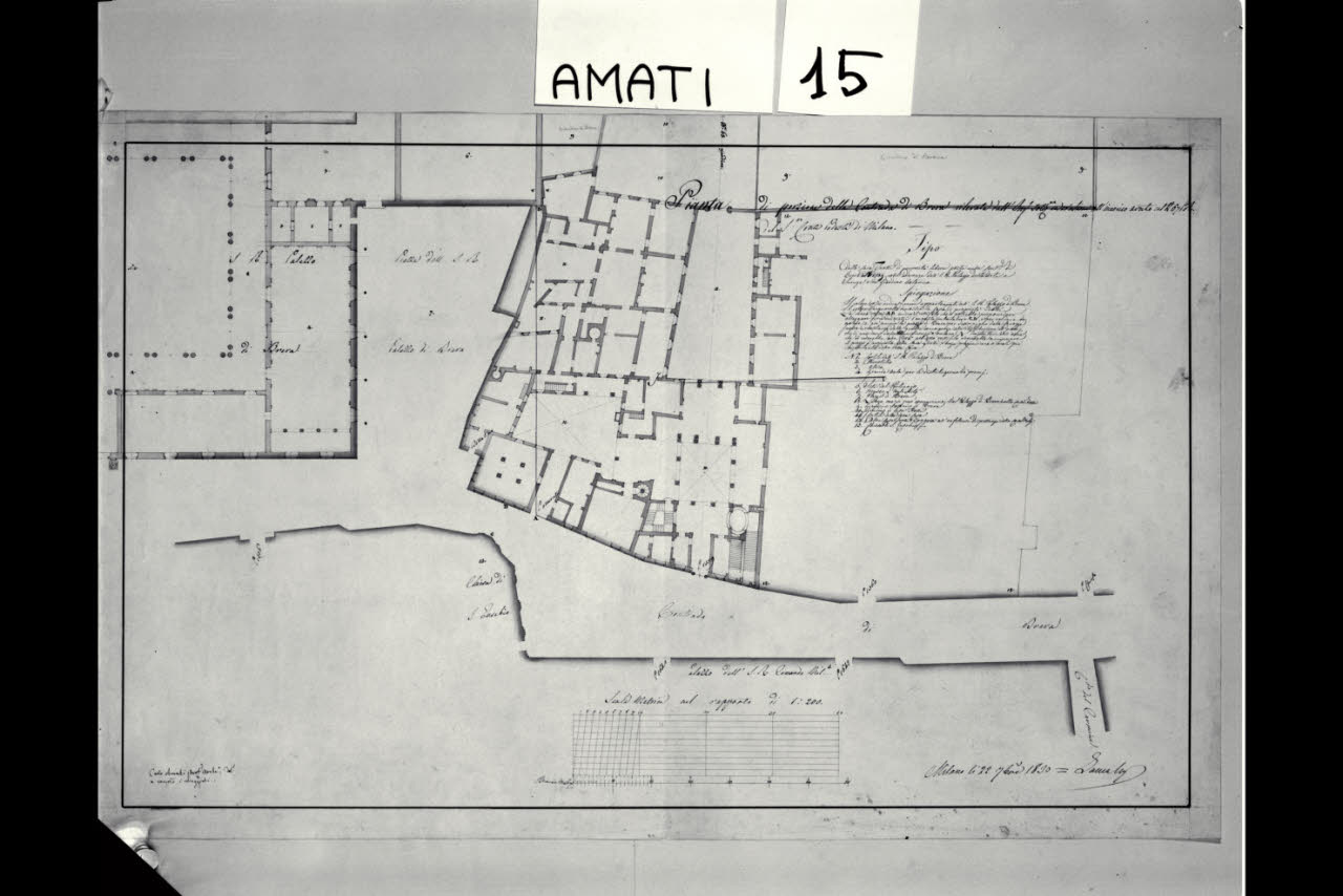 Pianta parziale del Palazzo di Brera e di Casa Trotti a Milano (già Contrada di Brera). Pianta parziale del Palazzo di Brera e di Casa Trotti a Milano (già Contrada di Brera)