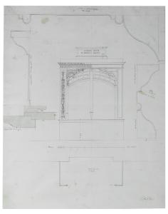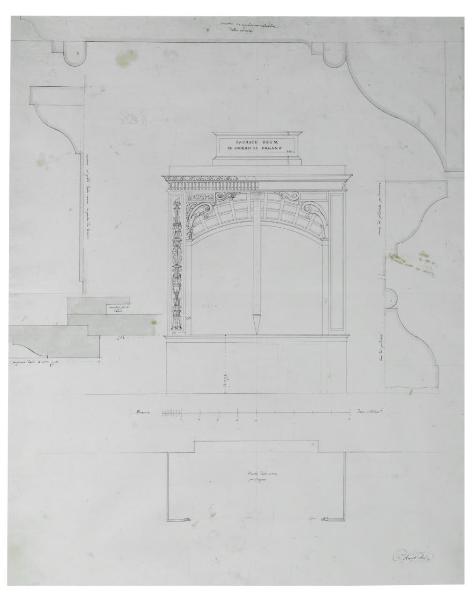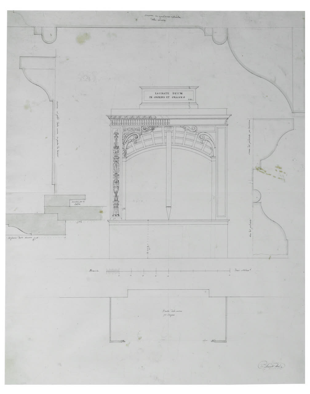 Pianta, prospetto e dettagli di un organo. Pianta, prospetto e dettagli di un organo