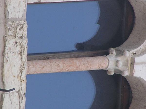 Colonna a fusto liscio, senza base con capitello a foglie d'acqua.