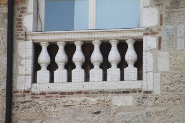 Balaustra costituita da on ordine di sei pilastri con base a dado e fusto ad anfora, con mensolone modanato aggettante.