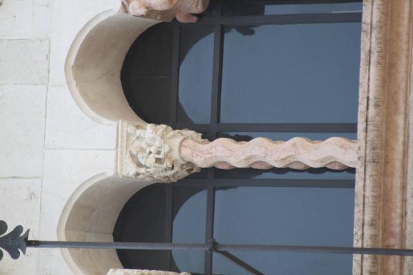 Colonnina binata con fusto tortile decorato a spigolo vivo.