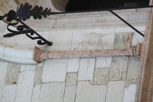 Colonnina con fusto liscio con toro e torchilo su base a dado e capitello a foglie d'acqua con abaco schiacciato.