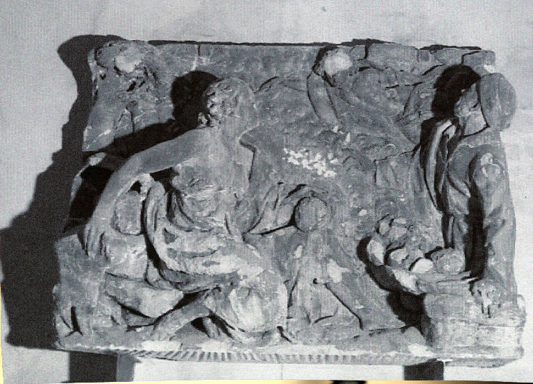 - NOTIZIE STORICO CRITICHE Il rilievo in marmo è nella posizione 30 di facciata (pilastone doppio a lato sinistro della porta centrale, verso la porta mediana, sopra la cornice)