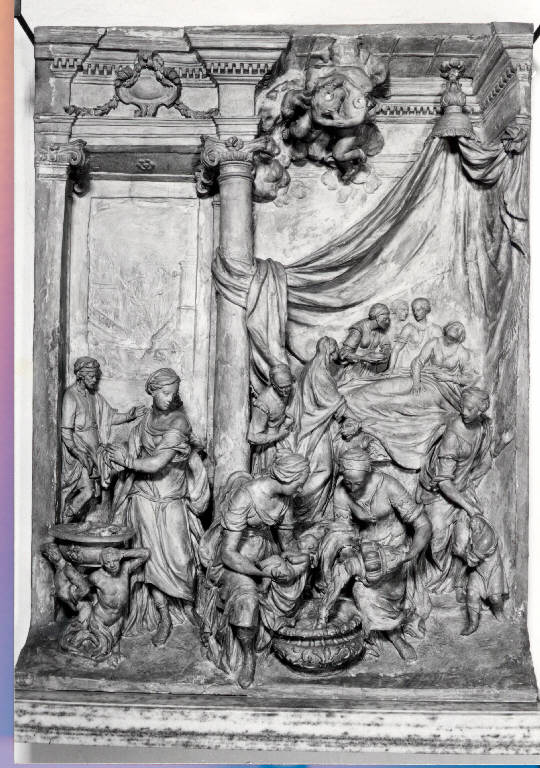 - NOTIZIE STORICO CRITICHE Modello per il rilievo della Cappella di S Giovanni Bono in Duomo rappresentante la nascita del Santo, eseguita dal Simotta.\nAl riguardo si vedano gli studi pubblicati da Francesca Bianchi Janetti