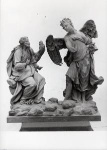 Complesso costituito da una figura maschile e da una figura demoniaca. Gesù è seduto su una roccia con la mano dx in atto benedicente, il diavolo si protende verso di lui con in mano un masso, i capelli scompigliati e la bocca socchiusa.