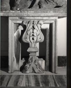 Porzione di parapetto decorato con elementi vegetali.