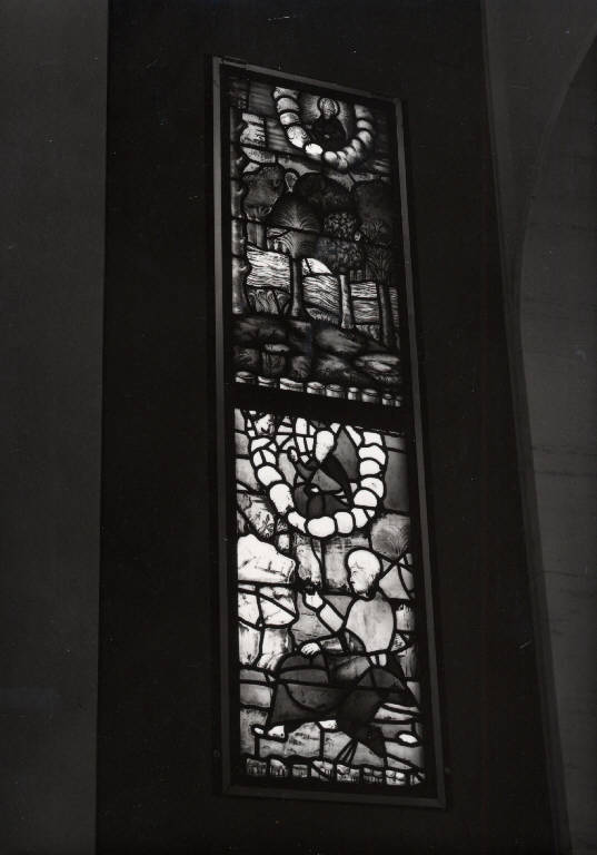 - NOTIZIE STORICO CRITICHE L'integrale originalità dei vetri permette una datazione certa al XIV secolo, ma non l'ideitificazione del soggetto. Probaibilmente originario del finiestrone 22.