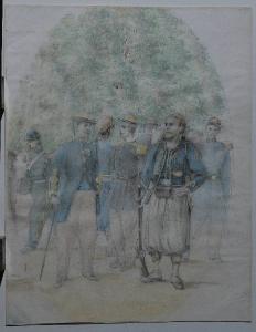 - NOTIZIE STORICO CRITICHE Stilisticamente il disegno è affine ai modi soffusi di fine Ottocento. L'utilizzo di definizioni sfumate, i colori pastello, la sfaldatura con cui sono rese le figure dei soldati potrebbero condurre ad un ambito milanese.
