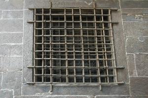 Mostra di finestra in pietra intagliata.