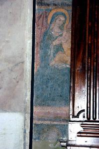 - NOTIZIE STORICO CRITICHE L'affresco fu scoperto nel 1944, durante la campagna di restauri che interessò l'intera parete di fondo del braccio sinistro del transetto: in quella occasione, Arturo Cividini riportò alla luce tutti i dipinti murali che erano stati scialbati al tempo della riforma della Basilica progettata da Pellegrino Tibaldi (Angelini, 1953, p. 48). Il frammento, come gli altri che con difficoltà si scorgono a lato della bussola, è assai poco studiato: nella letteratura recente; solo Roberta Pellati ne fa cenno, attribuendolo rapidamente al "Maestro dell'Albero della Vita" che, secondo la studiosa, è autore della maggior parte degli affreschi della parete (Pellati, in "I pittori bergamaschi...Le origini", 1992, p. 186).