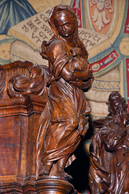 - NOTIZIE STORICO CRITICHE La statua appartiene al confessionale scolpito da Andrea Fantoni tra il 1704 e il 1705 per il Duomo di Bergamo, su commissione del canonico Giovan Pietro Mazza.\nL'opera ha subito un delicato intervento di restauro nel 1999, a cura di Eugenio e Luciano Gritti del Consorzio Professionale Restauratori d'Arte (l'intervento è descritto in dettaglio in Curatola/ Gritti/ Zanchi, 2000, pp.44-53).